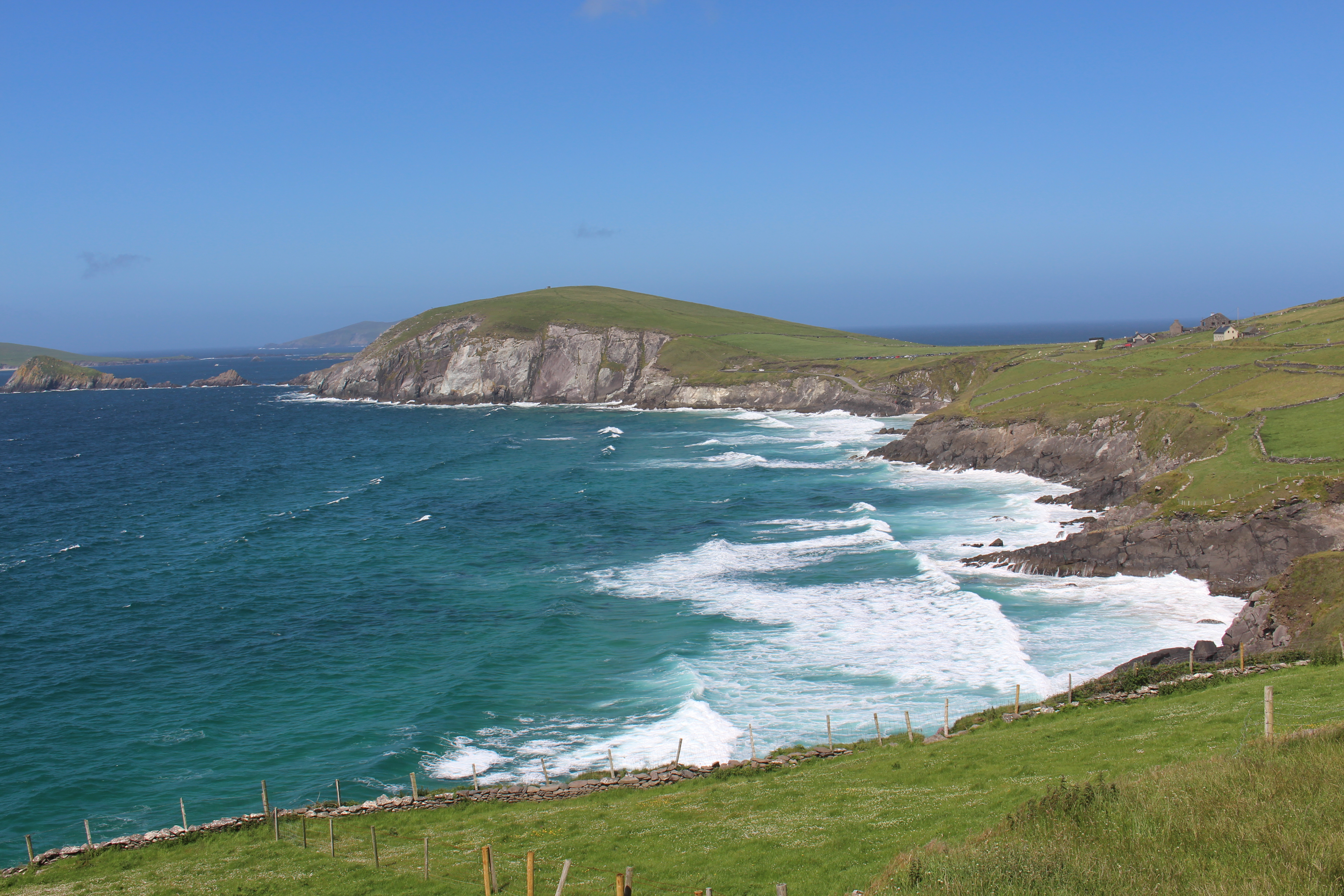 There was a French group coming with us on the Dingle tour, and I found out from one of the girls that they were from Clermont-Ferrand, where Michelin Tires originated. The bus tour was a standard drive out to countryside. Our first stop was at Inch Beach, which was trying to repel us with its insanely strong winds. The next few stops were gorgeous views of the coastline and other islands. The water was so blue and the islands so green.
